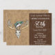 Handsome Fishing and Hunting Themed Birthday Invitation Card. Enter you details and it's ready to go! Largemouth Bass Jumping to catch a vintage Hula Popper lure over a monster buck rack and skull. Design is hand drawn by ©Tina Hesskew of Fishing Hunting Life.