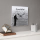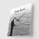Let's get away from it all and go fishing! Easily customize or remove the text on this wall clock which features a black and white image of a solitary fisherman standing on a rock ledge at Seneca Lake in Geneva, New York. The text reads: Gone fishin'