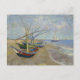 Fishing Boats on the beach at Saintes-Maries-de-la-Mer, or Vissersboten bij Les Saintes-Maries-de-la-Mer, was painted by the Dutch artist Vincent Van Gogh (1853-1890) in 1888, after he had made copious sketches in the early morning before the fishing boats set sail. He had rented four rooms in Arles, where, at Van Gogh's invitation, he was joined by Paul Gauguin in October. It is from Arles - "formidably cheerful as Holland is sad" - that he visits the fishing village of Les Saintes-Maries-de-la-Mer. Relations between the two became untenable and in December Van Gogh experienced the psychotic episode during which he threatened the other man with a razor and famously cut off a part of his left ear. Fishing Boats on the beach at Saintes-Maries-de-la-Mer can be seen at The Van Gogh Museum in Amsterdam.