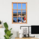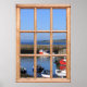 This view of bright fishing boats from a wood window frame is the companion of the other Boats in the Harbour window poster. It shows a scene at a pretty fishing harbour where the painted boats await their next sailing. Buy the posters as a pair and display this one to the left (as you look at the wall) of the other one to create the appearance of a real view out of 2 windows on your wall!