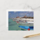 Postcard with an image of fishing boats moored along the shoreline of the sleepy village of Puerto Morelos, Mexico. See matching sticker. See the entire Mexico Postcard collection in the CARDS, POSTCARDS & STICKERS section.