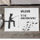 Doormat motif with a fishing theme. This one features a young fisherman with a school of fish.