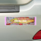 The product works very well. Zazzle delivered it in a sturdy packaging, with a special folder for the sticker so it wouldn't bend in the mail or anything, which I appreciate. Sticks well to the car, and looks good! The image quality and colour all looks good to me. Up close and afar, I see no problems with it.