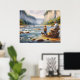Fishing Digital Watercolor River Canoe Poster
