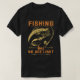 This design features a black t-shirt with the word "FISHING" at the top in an orange outlined box. Below it is a yellow graphic of a fish being caught on a fishing rod. Under the graphic is the text "has" above "NO AGE LIMIT" in orange.