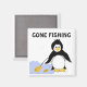 A cool penguin fishing for his dinner. A fun saying 'Gone Fishing' The message can be changed if so desired.