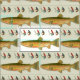 Trout fish and fishing flies pattern fabric. Created home decor, sew items, or craft with this custom fabric with a freshwater fishing theme. Colourful spotted trout images make "stripes" alongside red and blue fishing flies. Background is a neutral off-white and is part of the design so can't be changed.
