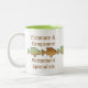 Une tasse de retraite avec six natation de poissons à travers cette tasse avec les mots "Fishmore et Campsome, spécialistes en retraite". Perfectionnez pour nouvellement la personne retraitée.