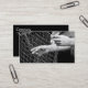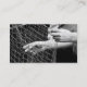 Business card with a front photo of hands holding fishing net. Customizable. Black backside with info.