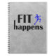 A good choice to stay motivated with your fitness routine, this text design features a black modern type font with a silhouette of a woman working out. The background is a grey grunge sweat pants pattern. Track your progress, keep schedules, records, weigh-ins and more in this handy notebook.