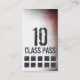 Fitness Class Business Card 10 Class Pass Card with a red and black distressed colour scheme and strong use of typography. Back of card has 10 punch or stamp placeholders. Perfect way to encourage class participation and an easy marketing tool. Use for a fitness company, gym, personal trainer gym, kettlebell training, bootcamp, or circuit training gym.
