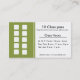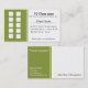Fitness class business card with optional 10 class pass on back. Card contains 10 boxes to be punched or stamped. Also has room to enter class times or names of classes. Fully customizable, enter in your company information and personalize this card to suite your needs.