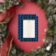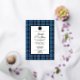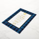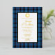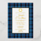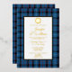 Classic blue clan Fitzgerald plaid and foil wedding invitation, with a white text area. A foil Celtic circle decorates the top of the text area and has a single letter custom monogram. Personalize the text for your highland wedding.