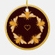 Five bees on dark rich brown gold rim circle ceramic ornament