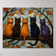 Five Cats on a Tree Branch Stained Glass Style Poster