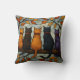 Five Cats on a Tree Branch Stained Glass Style Throw Pillow