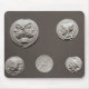 Roman's Five coins depicting Janus, Jupiter, Mercury and Minerva, 753 BC-476 AD located at the Bibliotheque Nationale, Paris, France.