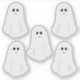 Five, white, cute little ghost stickers to add to your Halloween parties, projects, envelopes and gifts.