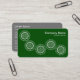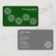A business/profile card template with a stylish five gear wheel motif on the front. Company name and business type on the front top right. Name and all other contact on the reverse with a single gear motif in the bottom right. Ready to be customized with your details, suitable for many types of business.
