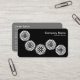 A business/profile card template with a stylish five gear wheel motif on the front. Company name and business type on the front top right. Name and all other contact on the reverse with a single gear motif in the bottom right. Ready to be customized with your details, suitable for many types of business.