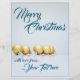 Five golden christmas balls. The personal text is only an example and can be customized accordingly.