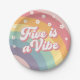 Five is a Vibe Retro 70s Rainbow Daisy Birthday Paper Plate