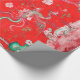 Five Phoenixes in Garden Chinese Red Floral Wrapping Paper