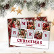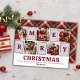Capture the warmth of the holiday season with this modern five-photo collage Christmas card. The front of the card features five photo slots surrounded by bold letters spelling "MERRY CHRISTMAS," creating a festive, stylish layout for showcasing cherished family moments. The customizable family name and a heartfelt holiday message complete the front design. On the back, a classic red and green plaid pattern adds a cozy, traditional touch, perfect for the holiday season. Personalize this card with your own family photos and message to create a memorable holiday greeting that friends and family will treasure. Thank you for visiting.