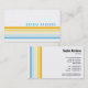 A business card template with a five coloured horizontal stripe motif on the front with the same stripes running vertically on the back and aligned to the left. Name on the front in double spaced letters. The name is also repeated on the back with the job title/position and contact details underneath. This card template has primarily designed for an individual or freelancer it can of course be further customized and could easily be adapted for other uses.