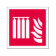 Fixed fire extinguishing battery and flame icon on red background.