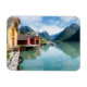 Rectangular photo magnet with the colourful houses of the tiny village Fjaerland with reflection in the water of the Fjaerlandsfjord, a branch of the Sognefjord, surrounded by big mountains in Sogn og Fjordane, Norway.