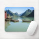 Mousepad with a landscape with a boat and a boathouse in the still water of the fjord Fjaerlandsfjord with mountains in the background in Norway