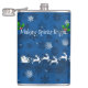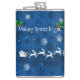 Profitez de votre boisson préférée pour adultes avec ce Blue Père Noël Sleigh et Reindeer Flask festif. Le design de la flacon comprend un traîneau à Père Noël orné de baies sèches et tiré par son renne contre un arrière - plan bleu avec des flocons de neige en chute et le dicton "Making Spirits Bright" que vous pouvez laisser ou personnaliser avec votre propre dicton. Autres cadeaux et objets de vacances disponibles avec ce design aussi.