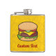 Illustration de dessin animé Cheeseburger. Les aliments indésirables entourent les icônes jaune motif arrière - plan. Texte personnalisé.