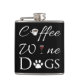 Un flacon parfait pour ceux qui aiment le café, le vin et les chiens ! Ce motif flacon comporte un texte fantaisie pour le café avec une garniture de tasse de café pour la lettre "o", vin qui contient un verre de vin rouge pour la lettre "i", et les chiens avec une embellie empreinte de patte en remplacement du "o". Autres cadeaux disponibles avec ce design aussi.