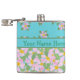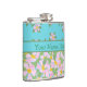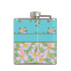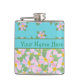 Un Hip Flask chic pour personnaliser, avec joli, mixer''n'match nostalgique des motifs de chien rose Roses sur bleu turquoise. Une partie de la collection Posh & Painterly 'Rosy Posy'. (Ce motif s'adaptera à tous les flacons.)