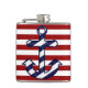 Le flacon pour le marin ou le plaisancier a une ancre rayée bleue et blanche sur les rayures rouges et blanches.
