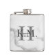 Un ton sur le monogramme de ton dans diverses nuances de gris, décore ce flacon liquide de courage sur un arrière - plan de marbre de Carrare, lui faisant un cadeau très frais et masculin. Il est parfait pour les garçons d'honneur à la noce, pour un patron, le beau-père ou votre papa. Ajoutez juste une bouteille de son favori pour la rendre extra spéciale.