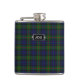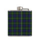 Flacon potable élégant avec le motif bleu, vert et rouge traditionnel de plaid de tartan de Gunn de clan. Personnalisez le monogramme de trois lettres, sur le métal regardant la plaque, pour adapter à vos besoins. Grands idée de cadeau pour tout type et particulièrement grand comme cadeau de noce pour des garçons d'honneur.