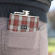 Flacon beau avec le motif rouge, vert, et gris classique de plaid de tartan de MacFie de clan. Personnalisez le monogramme de trois lettres, sur le métal regardant la plaque, pour adapter à vos besoins. Grands idée de cadeau pour tout type et particulièrement grand comme cadeau de noce pour des garçons d'honneur.
