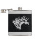 Cette unique "une des sortes" de flacon de wapitis ! Il est doté d'une Silhouette de taureau argenté sur un Arrière - plan en cuir noir...Entouré de bordures d'argent! C'est un Art Design original de l'artiste Kerry Miller.