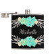Flacon avec monogramme personnalisé et fleurs turquoises et argentées