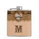 Flacon de boisson à thème de cowgirl occidentale faite en graphismes d'un look cuir bronzé, avec une bande décorative marron, autour du sommet, avec un coeur, au milieu de l'avant. Personnalisez le monogramme d'une lettre brune pour vous-même ou comme une excellente idée cadeau.