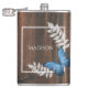Profitez de vos boissons alcoolisées préférées à tout moment avec un flacon Rustique Bleu Papillon Vinyl Emballé. Le design flacon comprend un papillon vibrant reposant sur un feuillage délicat et un espace pour ajouter votre nom à un arrière - plan en bois rustique. Autres cadeaux disponibles avec ce design aussi.