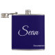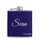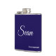 Un flacon personnalisé avec nom et titre est un excellent cadeau pour votre mariage, pour vos fiançailles ou pour votre enterrement de vie de garçon. Les couleurs sont Bleu Nuit et le texte peut être remplacé par votre propre nom et titre.