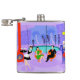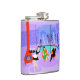 Ce flacon Retro Tropical Cocktail Party est enivrant dans ses détails. Le dessin animé présente le type de cocktail extrêmement sophistiqué que l'on ne voit normalement que dans les films des années 1960. Un salon moderne du milieu du siècle est rempli de fêtards qui apprécient la décoration chic et violette. Une jolie femme en uniforme de domestique française porte un plateau de martinis. Elle se tient à côté d'une cheminée rouge à cônes avec un feu rugissant. Au centre de la pièce, un beau couple s'installe dans des chaises à oeufs d'orange. La femme porte une robe verte et brillante. L'homme porte un costume noir avec une cravate rouge. Ils tiennent chacun un martini. Un autre couple devient cosy sous un lustre suspendu, jaune, Spoutnik. Le distingué homme aux cheveux blancs porte un costume bleu, une chemise bleu clair et une cravate rouge. Il tient aussi un martini dans chaque main, montrant au monde que ses jours de fête sont loin d'être terminés. Son compagnon est une blonde en forme dans une robe rouge étonnante. Derrière cette scène, on peut voir à travers des murs en verre du sol au plafond. La scène extérieure dispose d'une piscine ronde et turquoise. On peut voir la silhouette violette d'une femme plongeant ses jambes dans l'eau. Entre les murs violets et en pierre, il y a des silhouettes de palmiers. Les silhouettes de danses et de fêtards parlants sont également visibles. S'il y a une chose que cela prouve, c'est que, tandis que les gens qui vivent dans des maisons en verre ne devraient pas jeter de pierres, ils devraient certainement jeter des fêtes !