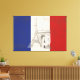 This patriotic canvas print design features the flag of France overlaying images of The Eiffel Tower, Arc de Triomphe, and a sample of fine French wine... all with a modern, distressed effect. Search ID156 to see other products with this design.