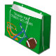 Win the game when you create your own personalized gift bag that's perfect for flag football coaches and players. This gift bag features illustrations of footballs and flag belts and is ready to be customized with your own message on the front with a second message on the back.