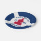 Paper Plate with flag of city of Fort Wayne, Indiana; blue and white flag and with red blockhouse in the centre and three illustrations in the blue field - illustration of Native American’s head, French fleur-de-lys and British lion