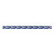 Ribbon with flag of city of Fort Wayne, Indiana; blue and white flag and with red blockhouse in the centre and three illustrations in the blue field - illustration of Native American’s head, French fleur-de-lys and British lion